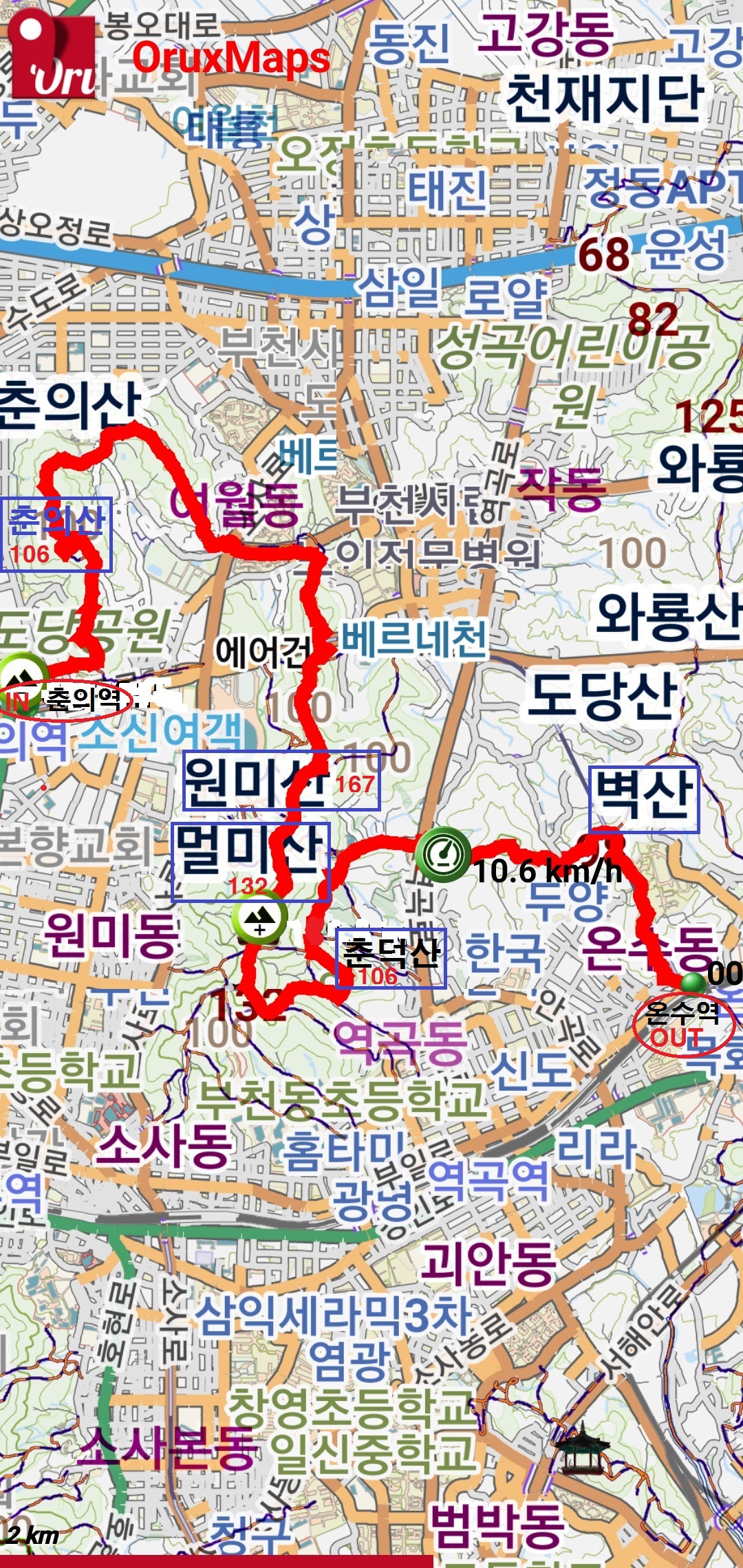 1.5km 35분 [춘의산](10;10~10;15)[5분]