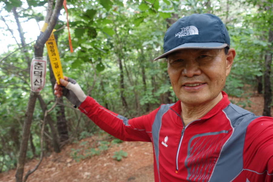 김신원 만산회회장님과 멀미산 표시된 만산 동호회시그널이 걸려있다. 내림길 내려선후 3거리에서 좌향 내림길 내려 건너편 보우리가 세럴산인줄 알고 진행 했는데 춘덕산을 만난다. (cf 능선따라 좀더 진행하면 세럴산인데 지도를 잘못이해하고~~ㅠ.)