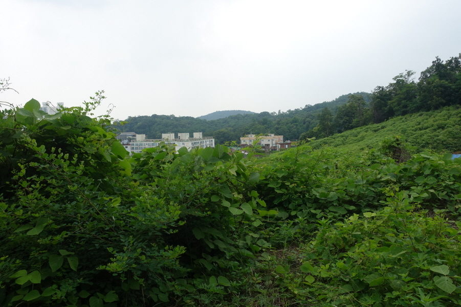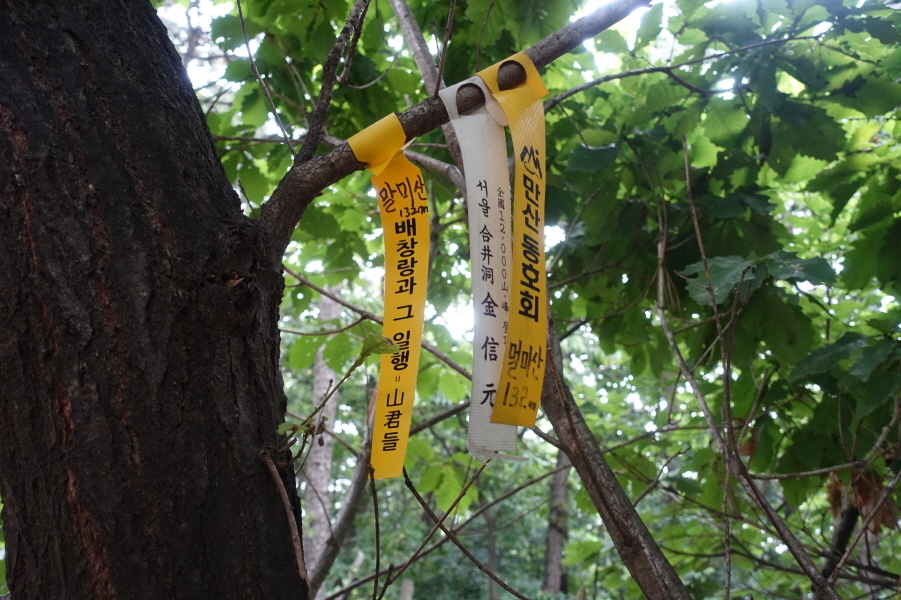 잡풀사이로 난 소로길을 따르면 군부대를 우측에 두고 잘정비된 등로를 만나 완만하게 우측으로 이어간다.