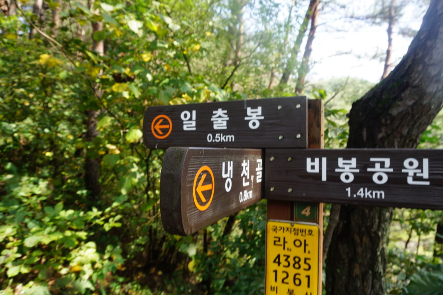 (12;08) 이정표(비봉공원 1.4km/냉천골 0.8km/일출봉 0.5km)입니다