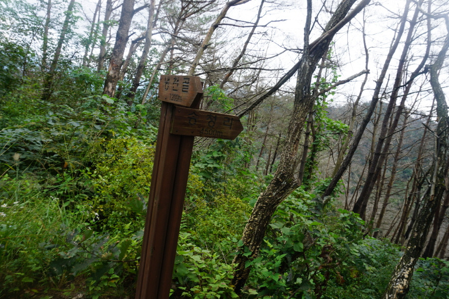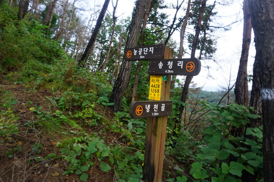 (11;48) 등로는 없어졌으나 이정표(농공단지 2km/송청리 4.3km/냉천골 1.3km)는 새것 같습니다
