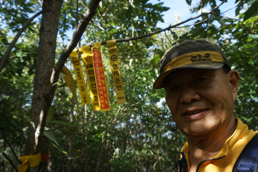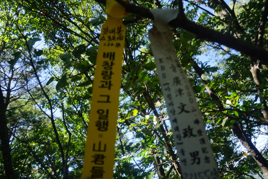 (11;46~11;48)[2분] 용봉(436m) 정상 표지기"배창랑과 그 일행=山君들"과 광주빛고을 산악회 표지기입니다.