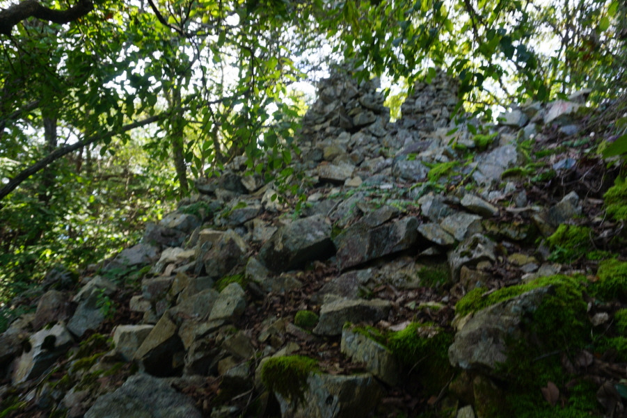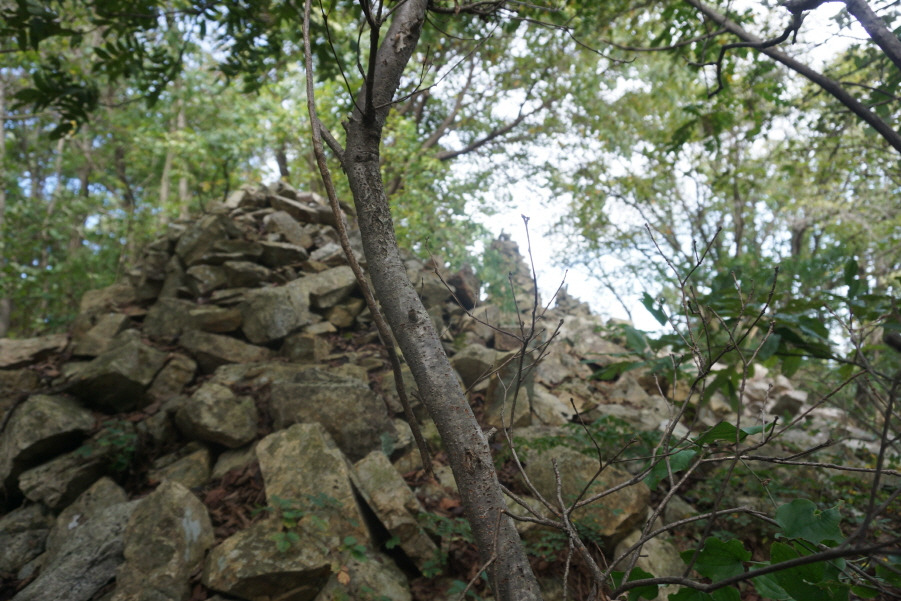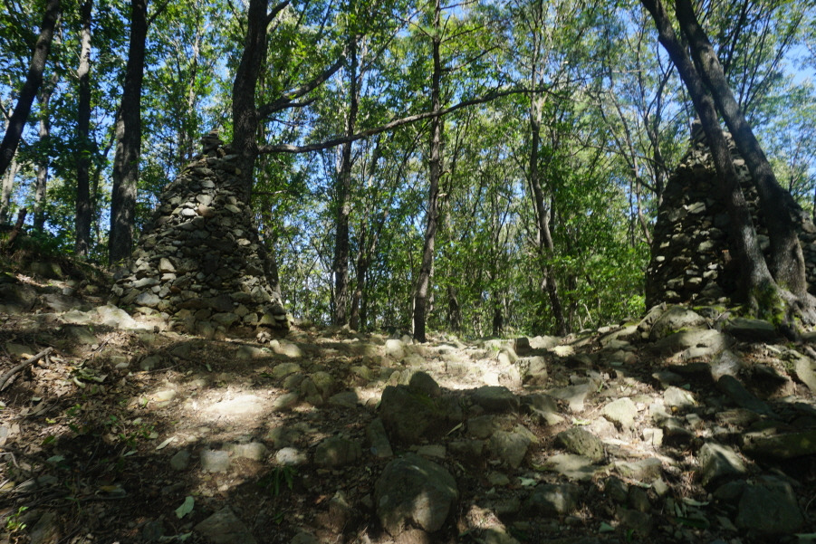 (10;15)톨탑3기로 되돌아와 좌측 (처음 진행방향우측)으로 허물어진 성곽터를 내려서면서 돌탑 3기를 뒤돌아 봅니다