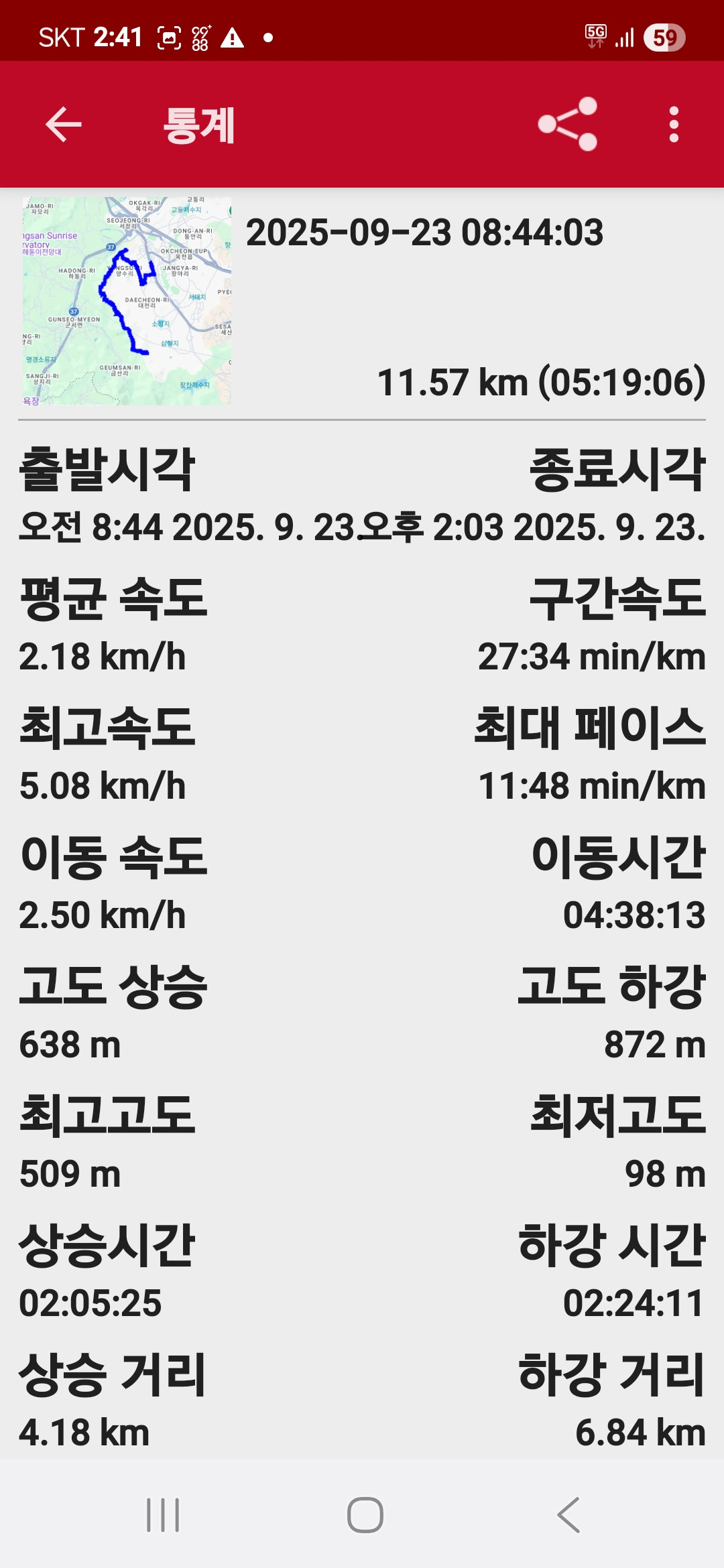 산행일자;2025년 09월 23일(화). 날씨; 맑음. 산행거리;11.6km. 산행시간;5시간 19분(08;44~14;03)