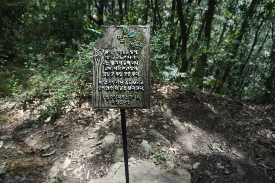 계속해서 능선을 타고 15분 내려서면 삼거리가 나타난다. 여기서 오른쪽 길로 내려서면 양수리 마을회관 앞으로 길이 이어진다. 마을회관에서 도로를 따라 터벅터벅 15분 정도 걷다 보니 KTX가 지나가는 것이 보인다. 이 경부선 철길 밑의 굴다리를 빠져나와 우회전하면 출발지점인 옥천역이 코앞이다.