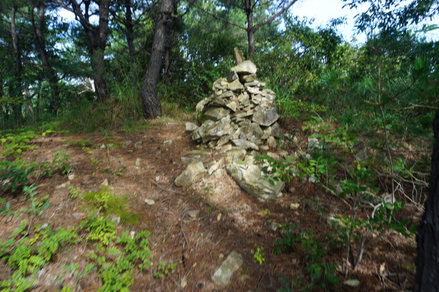 (10;08) 마성산성터 돌탑 3기입니다. 마성산 정상을 왕복(약 30m) 후 우측능선을 찾아 내려 설 에정입니다