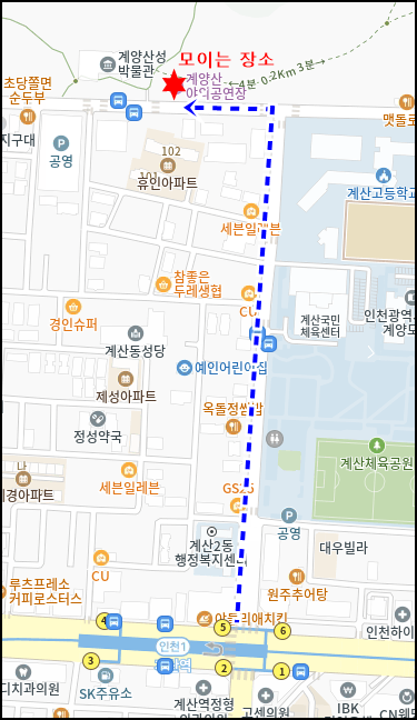 4. 산행 코스 : 야외공연장~ 하느재~정상~야외공연장(또는 경인여대 주차장)