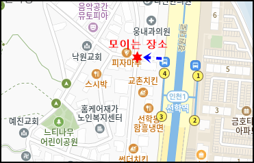 3. 모임 장소 : 선학역 4번 출구 밖, 좌측 언덕 위