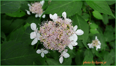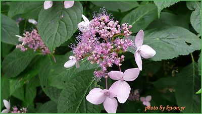 산길 계곡가엔 산수국 들이 자태를 뽑내고 각기다른 모양새와 색감으로 눈길을 유혹 합니다.