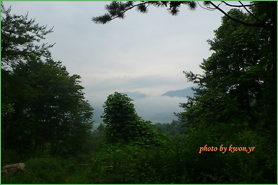 아침 비가 그친후 뭉개구름이 산허리를 감싸고...