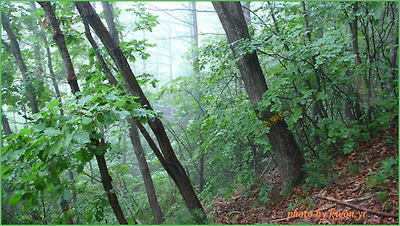 산행지...이곳에서부터 빗줄기가 굵어젔다.