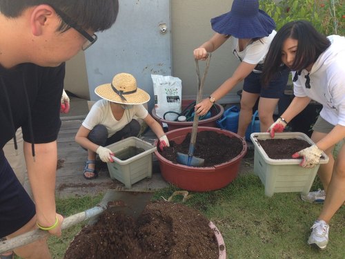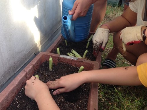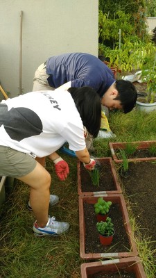 상자텃밭 흙갈이를 완료한 후 모종을 심어주었습니다. 이젠 제법 손에 익은 모종 심기라 처음 오신 분들이 직접 해보셨어요. 조를 짜서 말이죠. 적당한 크기로 흙을 파준 뒤 물을 흠뻑 뿌려주고 조심스럽게 모종을 옮겨줍니다. 토닥토닥 잘 자라길 기원하는 손길에서 정성이 ㅋㅋㅋ