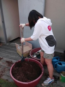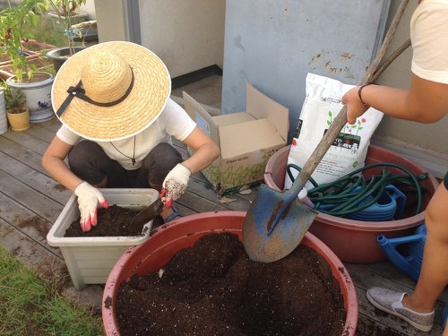 나무텃밭은 지난 주에 이미 퇴비를 뿌려주었었죠. 그래서 상자텃밭 흙만 갈아주었습니다. 2년간 작물을 튼실하게 자라게 해준 흙을 한 곳에 모아 배양토와 섞어주었습니다. 예전엔 상토와 배양토를 섞어주었는데 요즘 나오는 흙은 그럴 필요가 없더라구요(없다고 써있었어요;;) 힘이 다한 흙에 다시 양분을 보충해준 뒤 다시 상자텃밭에 담아주었습니다.