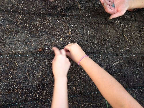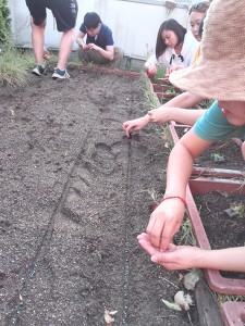 나란히 총각무를 파종합니다. 색깔이 이쁜 총각무 씨앗.