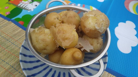알타리무 수확때처럼 제일 큰 작물을 수확한 다원님에게는 직접 한상을 차려주었네요. 좀 과장하면 아이 머리만한 감자가 나왔습니다....헐
