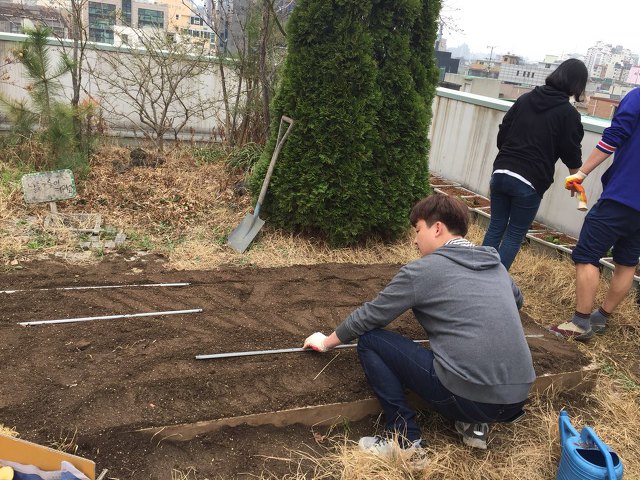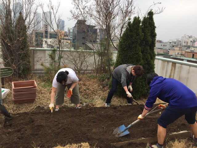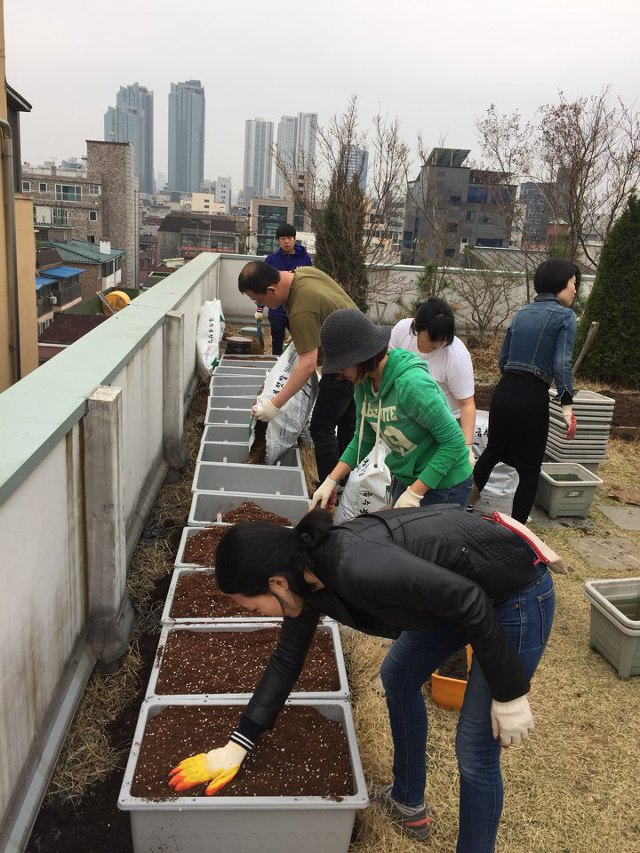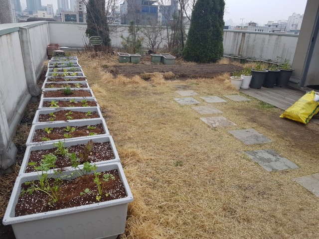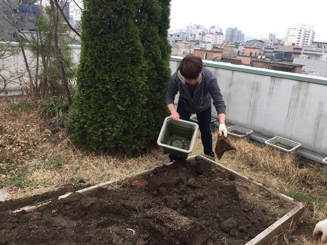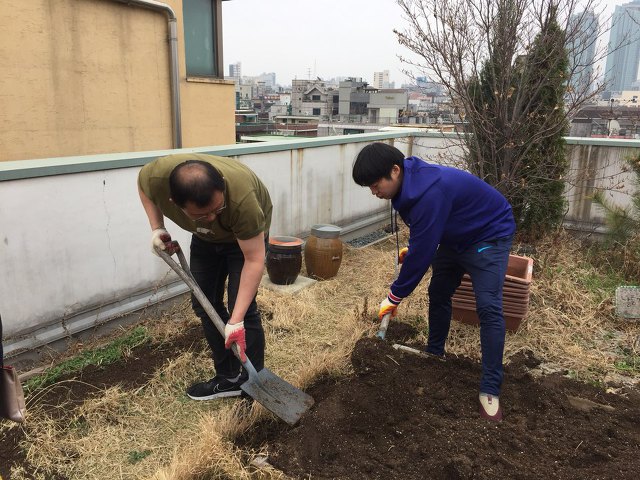 2018년 3월 30일 오후 1시 마포구청에서 보급받은 상자텃밭 15개와 함께 옥상텃밭을 한번 갈아엎었습니다.