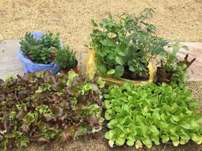영선언니들은 월드컵시장에서 다양한 모종을 사왔습니다. 고추, 깻잎, 샐러리, 당귀, 가지, 방울토마토 그리고 저번에 개미의 어택이 많았기에 병충해에 강한 허브들(로즈마리, 애플민트, 페퍼민트)도 사왔습니다.