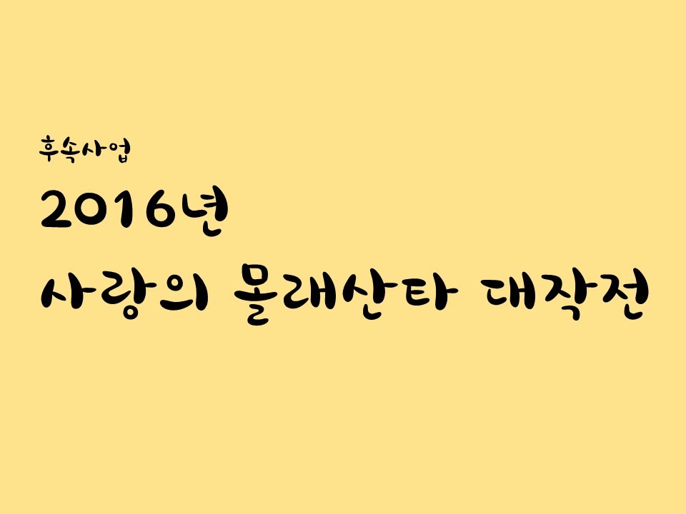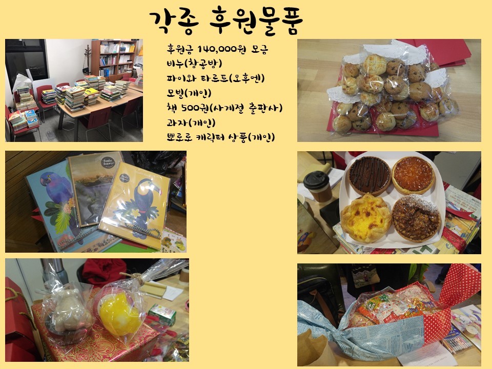 2016년을 마무리 짓는 사랑의 몰래산타 대작전 작성자손정기|작성시간16.12.22|조회수65 목록 댓글 0 글자크기 작게가 글자크기 크게가 한때 활동중지 했던, 봉사모임 반쪽이 다시 기지개를 켜려합니다. 망원2동 주민센터의 사업을 시작으로 올 12월달엔 2016년 사랑의 몰래산타 대작전을 잘 마무리 하였습니다. 많은 관심 부탁드립니다. 다음검색 현재 게시글 추가 기능 열기 북마크 공유하기 신고 센터로 신고 댓글 댓글 0 댓글쓰기 답글쓰기 댓글 리스트