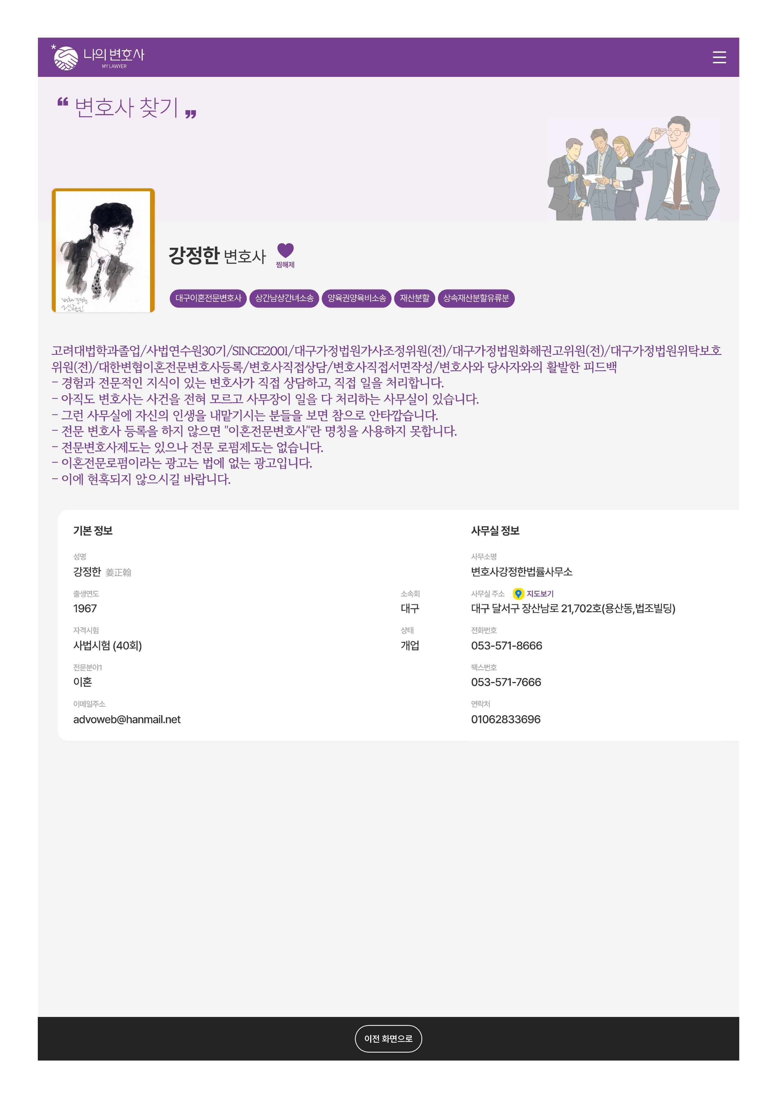 2001년 개업, 20년 이상의 경력, 대한변협 이혼전문변호사로서 수백 건의 성공적인 실무 경험을 보유하고 있습니다.