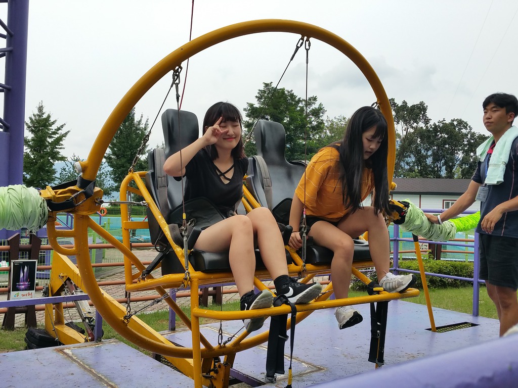 청풍랜드 번지점프를 하다(1) 2017년 8월 19일(토) 서영이 친구 서경이 희은이가 번지점프를 한다고 한다. 그런데 들뜬 마음과는 달리 준비가 어설프다. 도리 없이 김은주님 수인이 까지 앞세우고 모처럼 아버지 노릇하러 운전을 나선다. 충북 제천시 청풍면 교리 우리나라에서 가장 높고 무섭다는 청풍랜드 번지점프장을 나서는 길 모든 것이 당황스럽고 낯설기만 하다. 호남선 경부선 중부선 고속도로를 타고 굽이굽이 둘레길 따라 가다 드디어 도착한 제천 청풍랜드 청풍호수가 고요한 이 곳에 이렇게 높다란 번지점프장이 있다니 그러나 호수로 낙하하는 곳이 아니라는 점에서 기대와 다르다 먼저 이젝션시트 수직상승하다가 360도 회전하는 스릴 만점의 기구다. 예상 외로 아이들은 스릴을 만끽하는 눈치다. 그 다음에 번지점프 남녀가 공히 승강대까지 오르지만 눈 앞에 펼쳐진 낙하거리에 오금이 저린걸까 점프하는 사람보다 포기하고 다시 내려오는 사람들이 더많다 가위바위보로 결정해서 희은이 젤 먼저 다음에 서영이 그 다음이 서경이 수인이 순이다. 희은이 주저주저 끝에 포기해 버린다 준비 없이 무조건 도전한 소치이리라 다음에 서영이 버켓리스트에 담은 소원이니 만큼 거침 없이 훌쩍 뛰어 내린다. 서경이 역시 주저 끝에 훌쩍 뛰어내린다. 수인이는 아직 어린가 보다 역시나 갑작스런 도전에 주저하고 말았다. 다음엔 하늘 높은 곳에서 활강하는 빅스윙 세사람 공히 신나게 하늘을 날다가 사뿐이 내려왔다. 제천 청풍랜드에서의 번지점프 버켓리스트 이 소원을 이루고 또 이루기 위하여 용감하게 이 길을 함께한 서영이 서경이 희은이 수인이가 자랑스럽다. 두려움을 향해 돌진할 때 인생의 두려움도 사라지고 마는 것 이 네 사람에게 있어 오늘 번지점프는 생을 향한 점프고 그 점프는 각자의 운명을 끌어안고 멋지게 그리고 아름답게 살아가는 생의 시작이리라. 2017.8.19 sial |