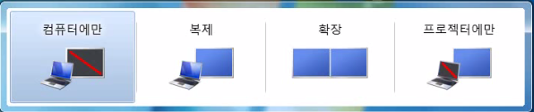 윈도우 7을 사용하시는 것 같이라면 키보드에서 윈도우키 + P 키를 함께 누르시면