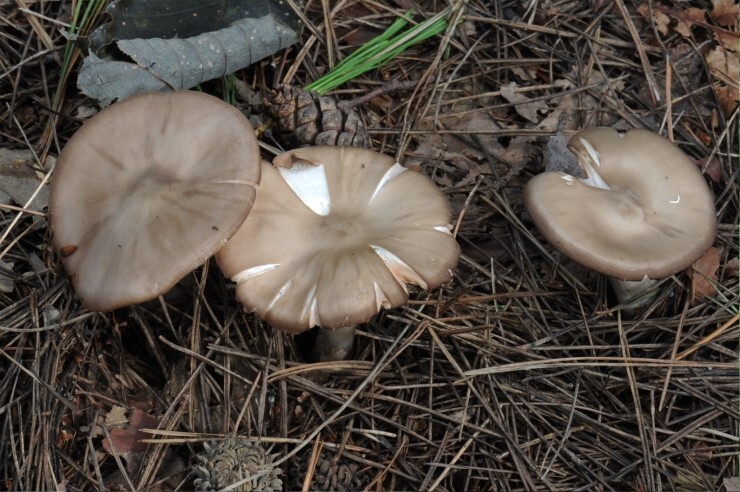 외대덧버섯(밀버섯)은 주름살이 버섯대에서 떨어져 있다(떨어진 주름살).