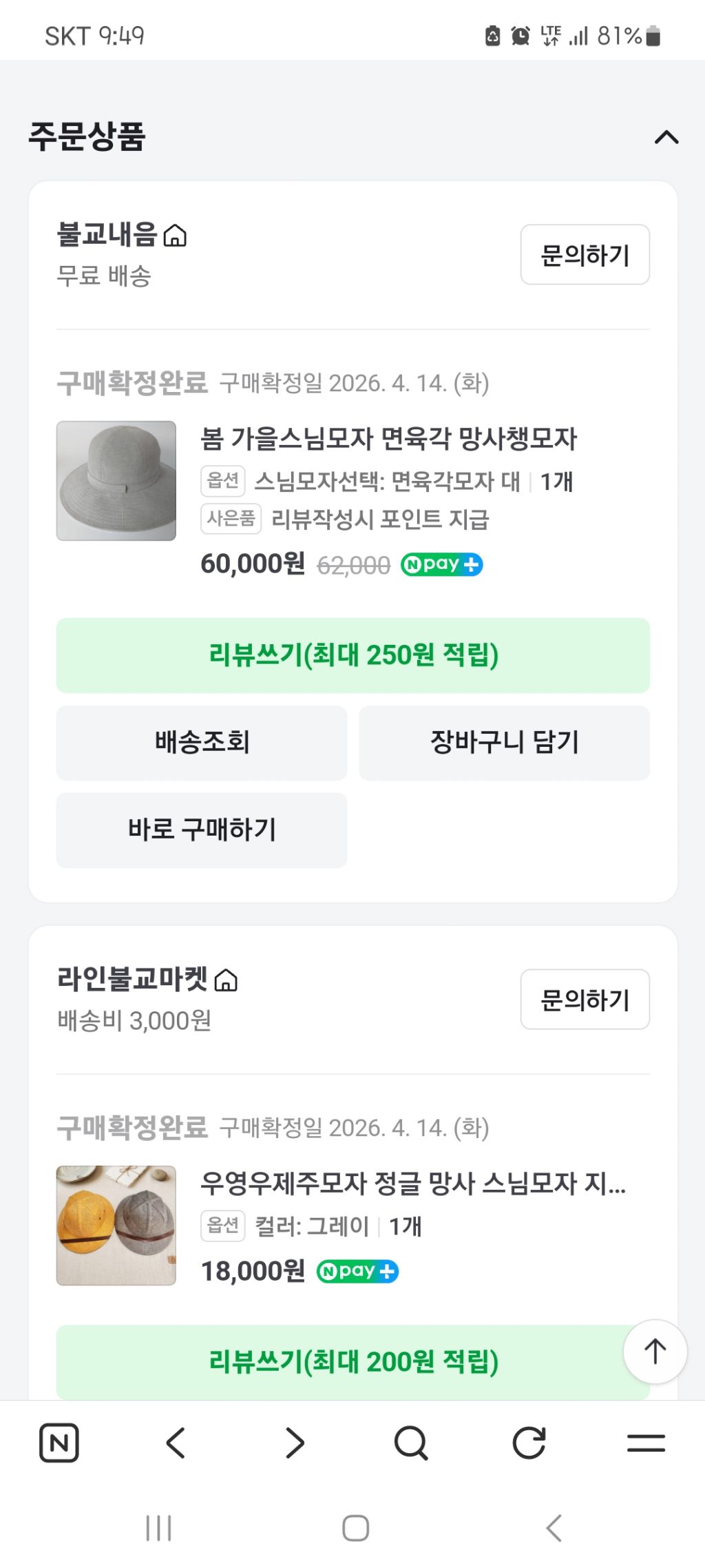 그래도 그 예전의 고마움땜에 햇볕이 조금씩 강해지기 시작하는 꼭 이맘때쯤 스님이 쓰실만한 모자를 매년 두어개 보내드려요.