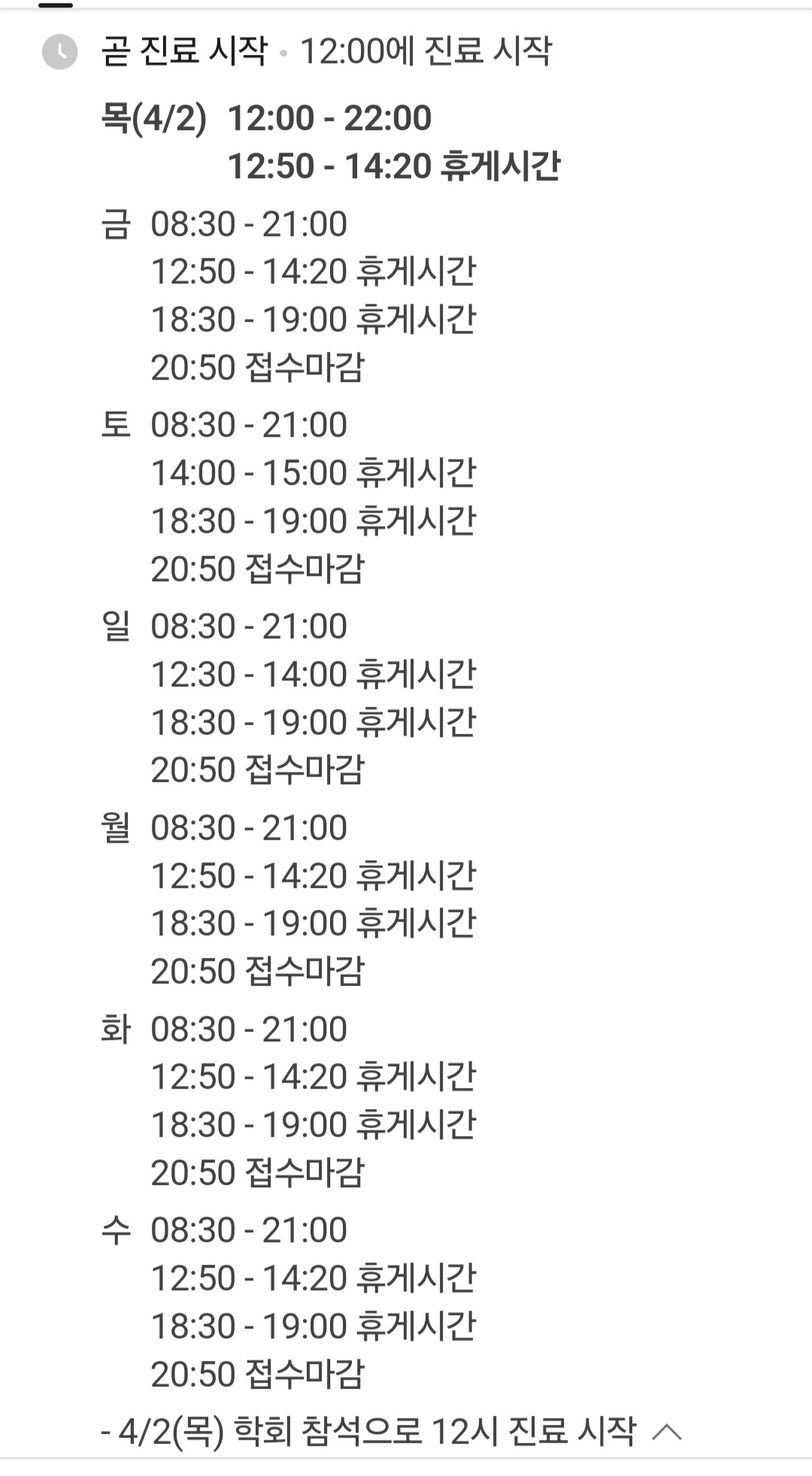 평일 8:30~22:00 (점심, 저녁 각 1시간 휴식)