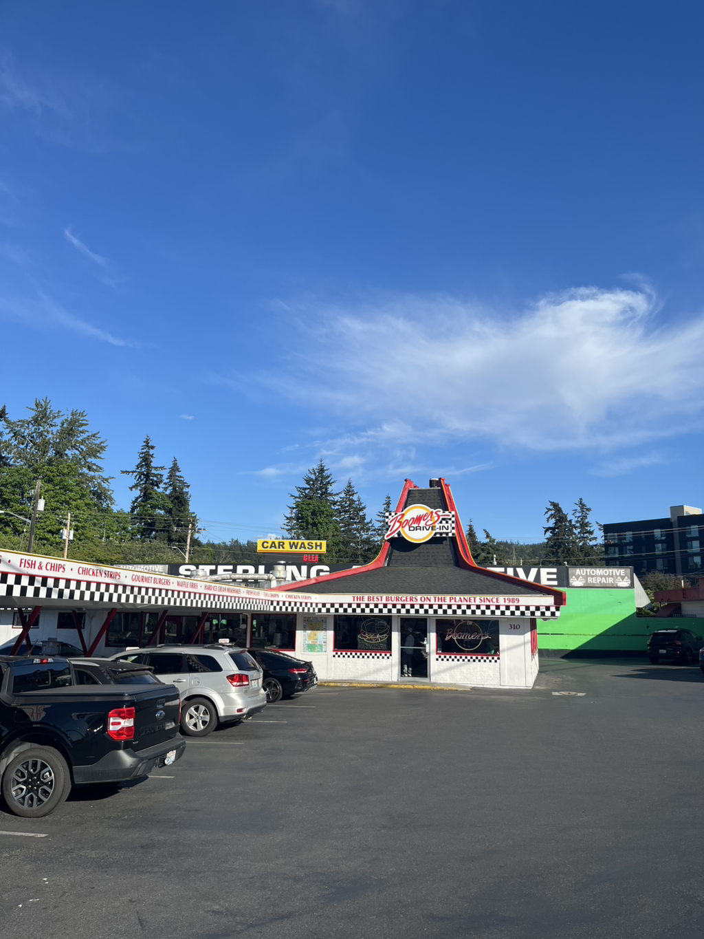 벨링햄에 20세기 스타일로 자동차세워서 주문하는