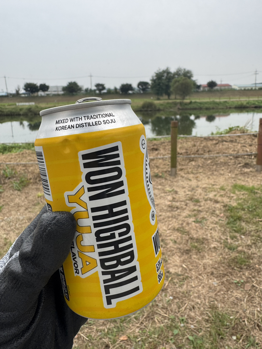 도착하자마자 하이볼 하나 따고 텐트치기 시작했어요