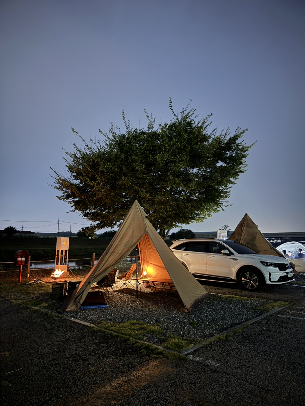출근했다가 조퇴하고 캠핑장 도착이요