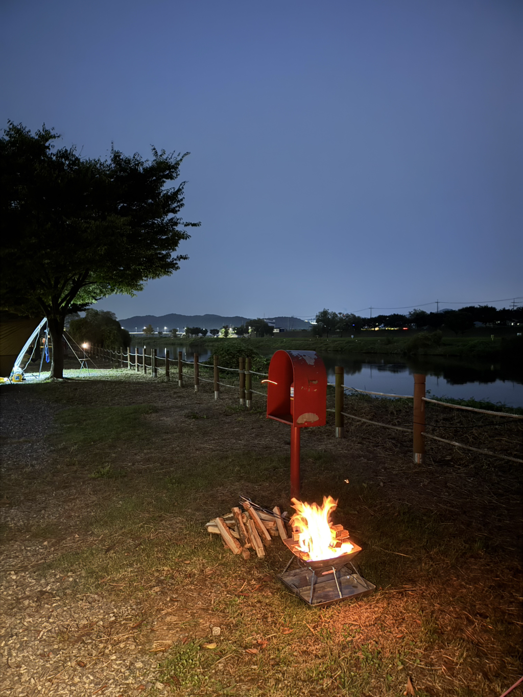 여긴 불멍도 가능해서 장작불 붙였어요