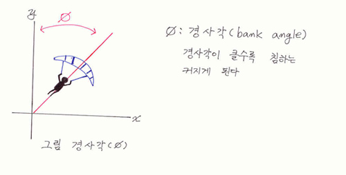 뱅크각(Bank Angle) : 롤링에 의해 날개가 수평에 대해 기울어진 경사각