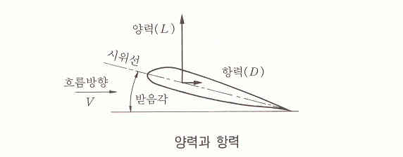 양력의 크기는 받음각(angle of attack), 비행속도, 날개 모양에 따라 달라진다.