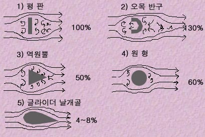 저항(Drag) : 항력. 날개가 전진함에 따라 반대 방향으로 작용하는 힘