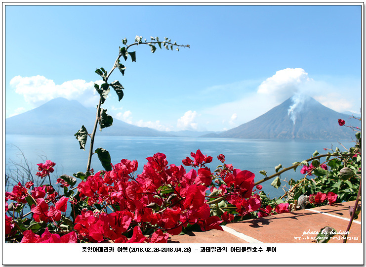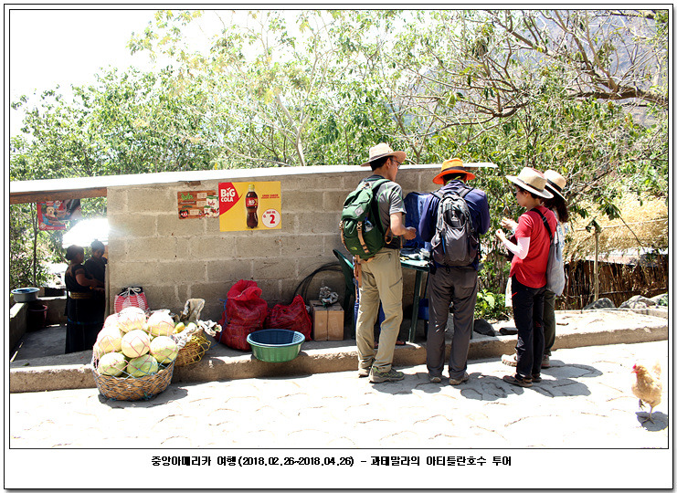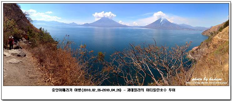 그동안 여행을 하면서 느낀것이 트레킹을 할 때 비로소 원주민들의 생활상이 생생한 날것 그대로 볼 수 있다는 것을 알게 되었기 때문에 가능한 많이 걷자.....이번 여행을 계획할 때도 그런 기회를 많이 갖기위해 트레킹을 많이 넣으려 했는데 그중의 하나가 오늘 걷는 아티틀란 호숫가 트레킹입니다. 아티틀란 호수는 해발고도가 높은 산정호수이기 때문에 선선한 기온에 맑고 깨끗한 공기로 트레킹을 하기에는 더없이 좋은 곳입니다. 실제로 걸어보니 사실이었고...
