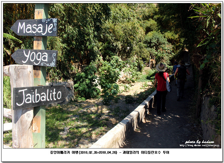 호숫가를 따라 만들어 놓은 트레킹 코스는 건너편의 화산을 바라보며 걷기 때문에 경치 또한 무척 아름답습니다. 오르내림이 심하지 않아 걷는데 불편함은 없고...간혹 나타나는 호숫가의 별장이나 호텔을 그야말로 한폭의 그림으로 자리잡고 있습니다. 작은 마을을 지날 때는 전통복장을입고 있는 인디오를 쉽게 만날 수 있고...마을에서 놀고 있는 아이들의 천진스러움은 세계 어느곳이나 똑 같다는 생각을 하게 됩니다. 아주 즐거운 시간을 보냈습니다.