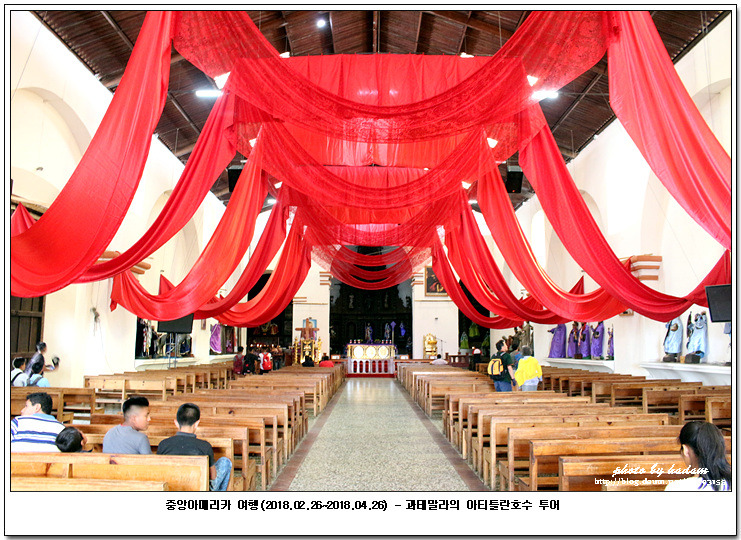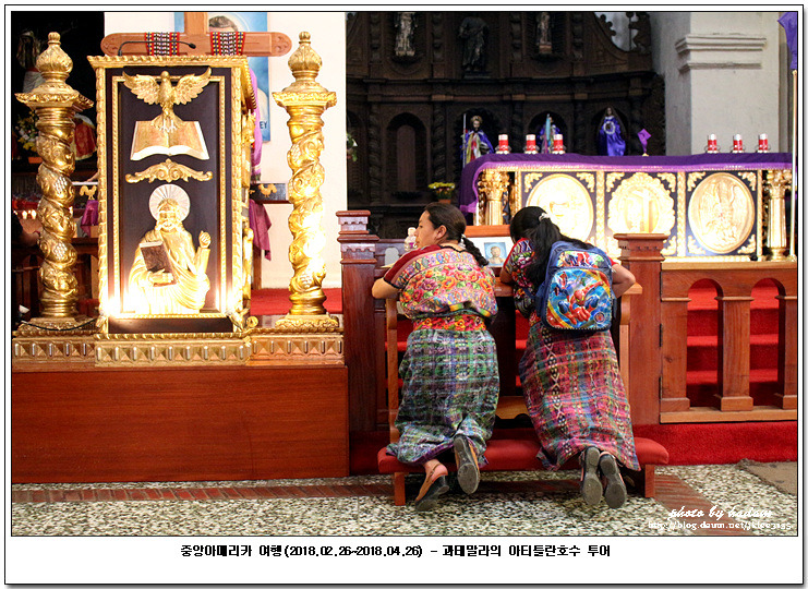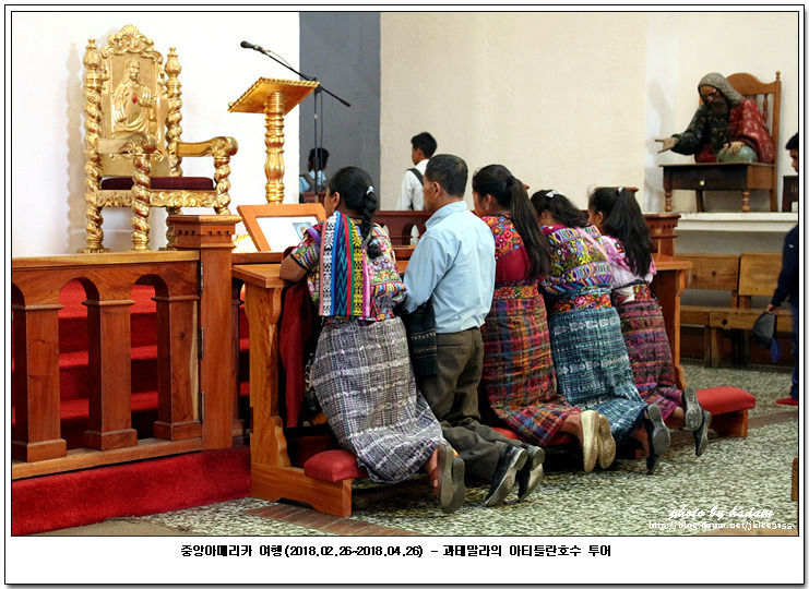 성당의 단상앞에 무릅을 끓고 있는 원주민들이 눈길을 잡습니다.