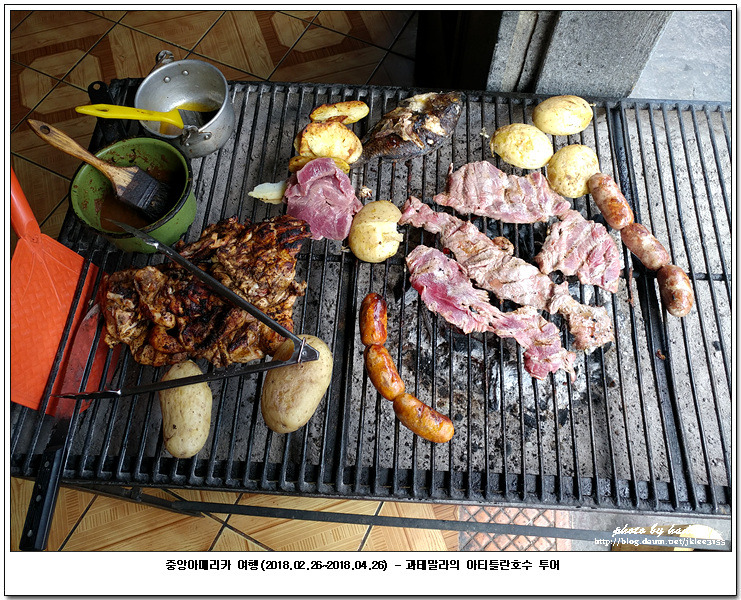 오전에 아티틀란호숫가 트레킹을 마치고 보트를 타고 산마르코스 인디오 마을로 들어가서 점심을 먹게 됩니다. 이곳에서 싸고 맛있는 집으로 알려진....육고기 숯불구이집에서 점심을 먹게 됩니다. 허름한 집으로 위생상태를 보면 별로 먹고싶지 않은 상태이지만 싸고 맛있다고 하니 두눈감고 먹습니다. 사실 여행을 하는 도중에는 먹는 음식은 위생상태를 가장 먼저 고려해야 하는 것인데...이날 가격은 쌌지만 맛은 별로..다행이 탈이 나지 않았으니 다행이었습니다.