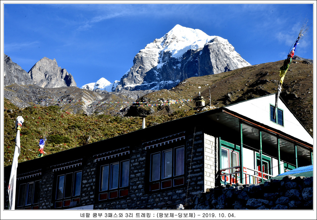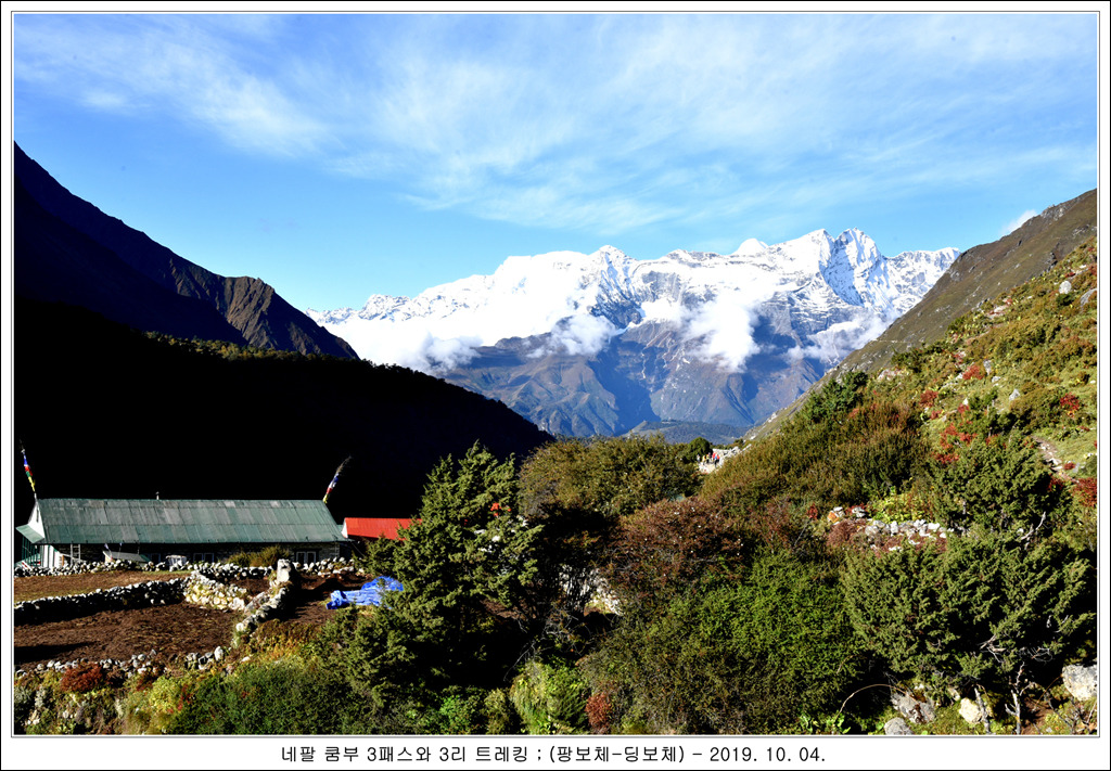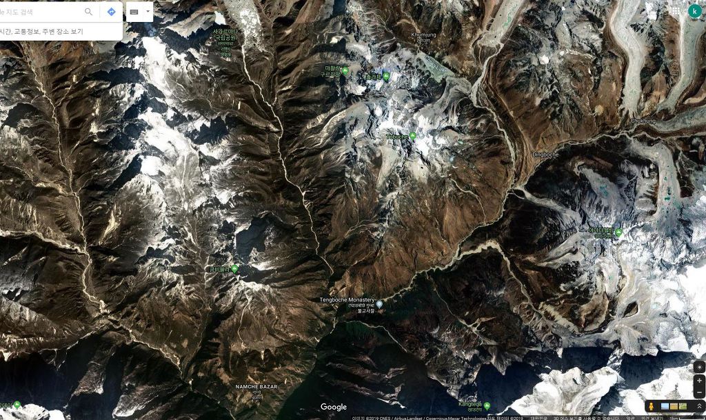 멀리 남체 건너편 꽁데이 산이 보입니다(구글 지도 참고), 가이드는 꿩대 피크라고 했던 것 같네요