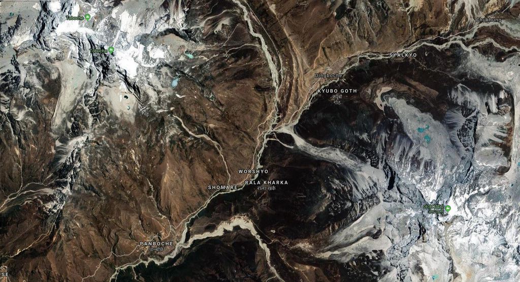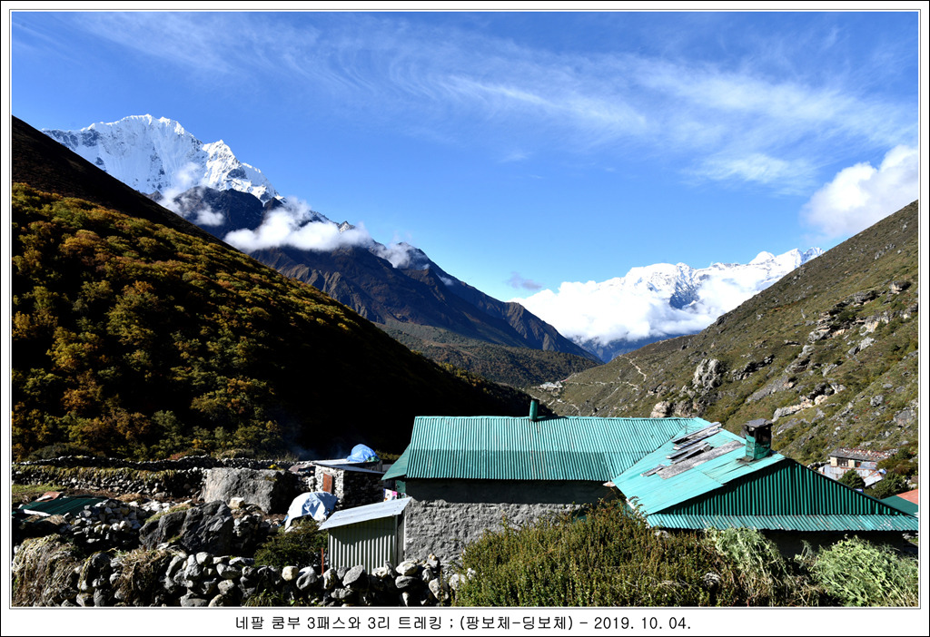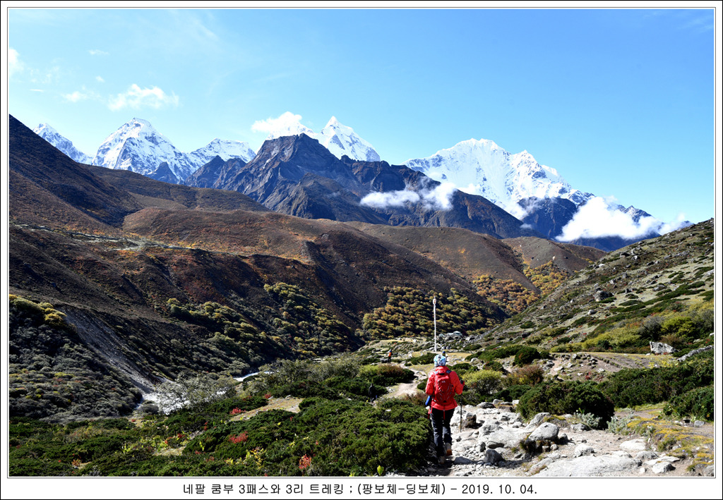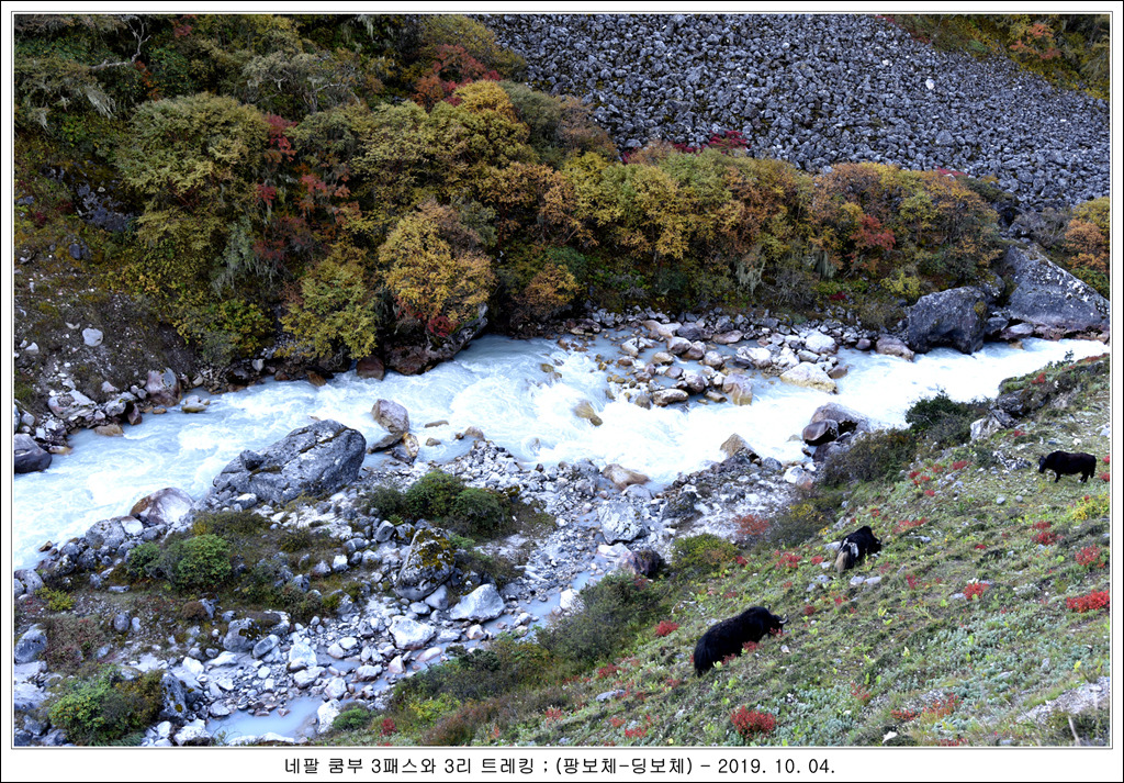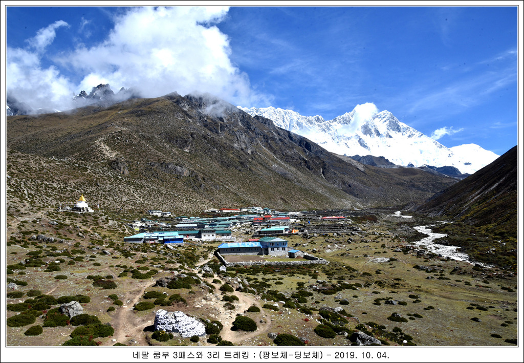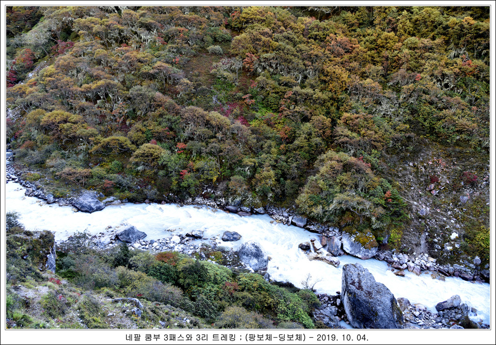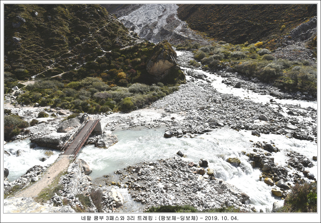 조금 더 가까이 왔습니다, 앞쪽 한참 더 가서 계곡을 건너 우측계곡을 따라 조금 올라가면 딩보체 입니다
