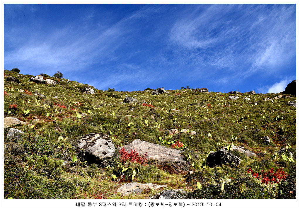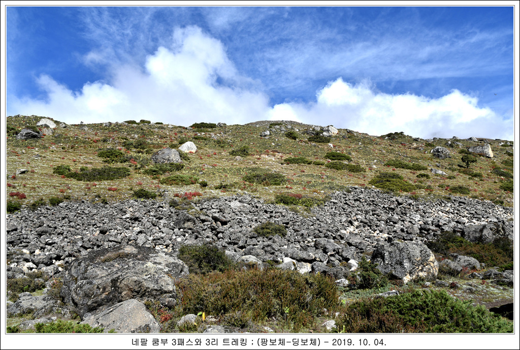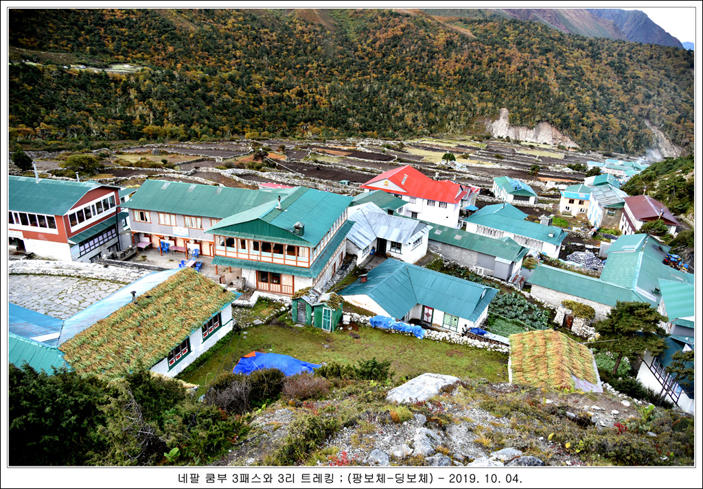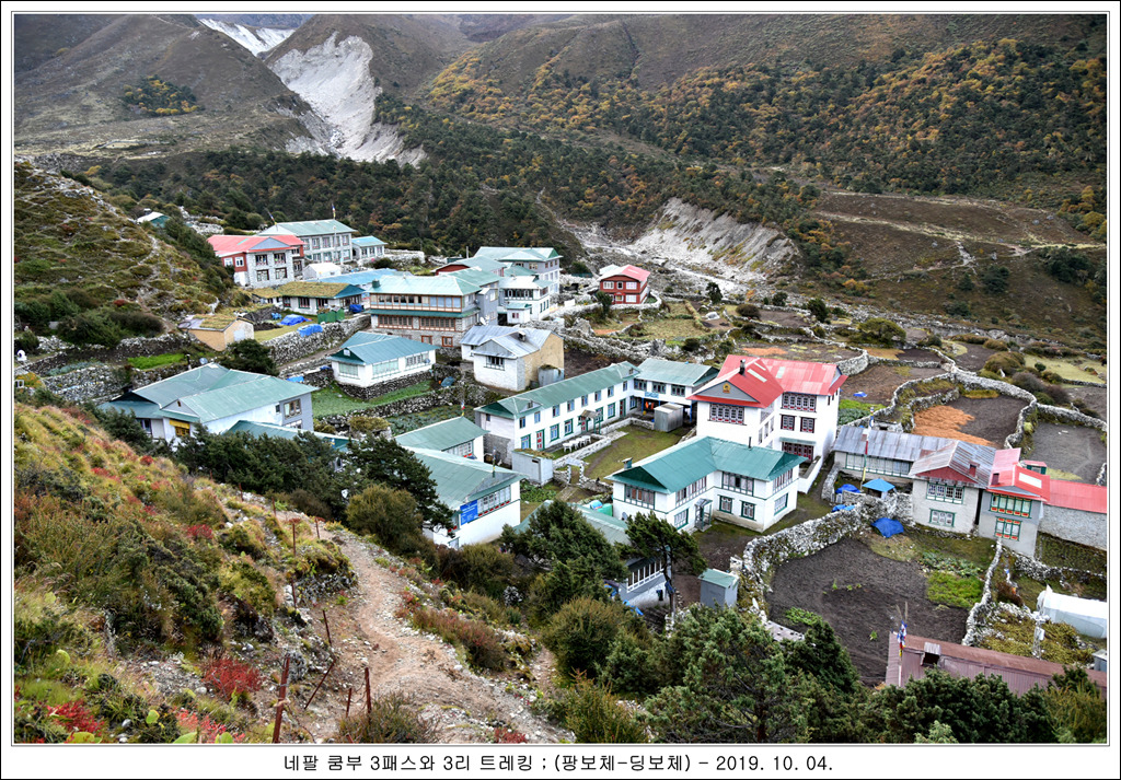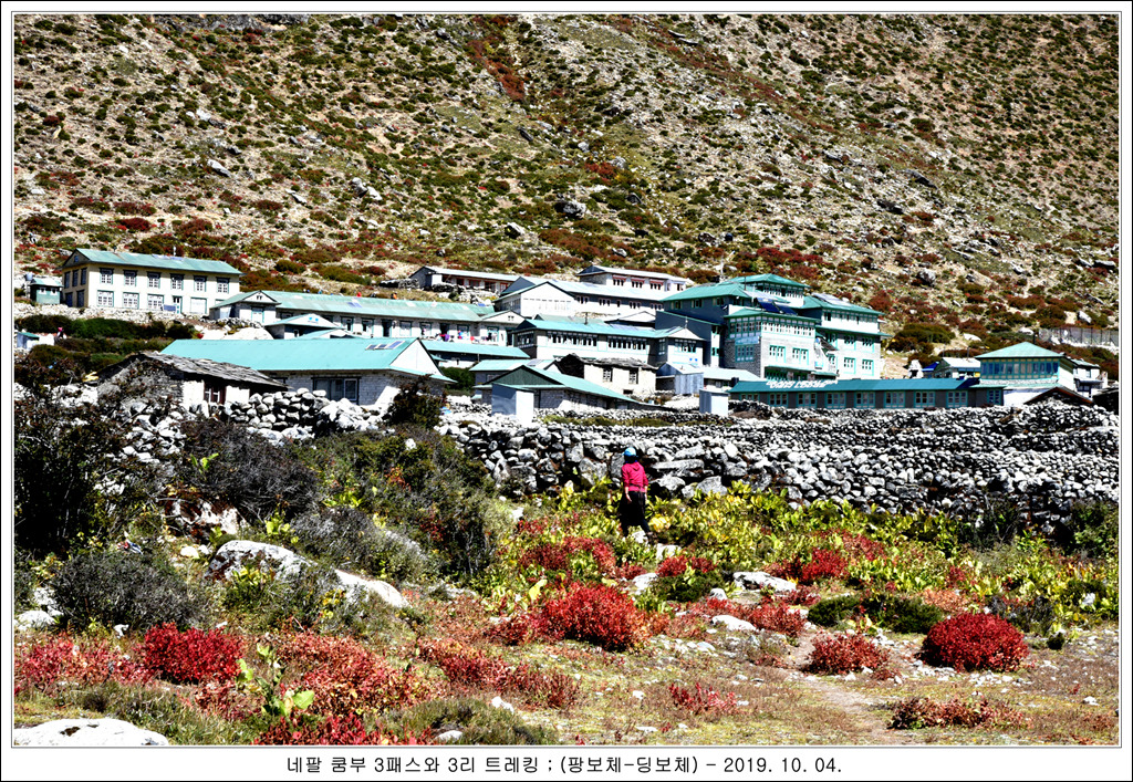 아침에 식사하기 전에 일찍 팡보체 마을을 조망하기 위하여 뒷산을 올라가봅니다