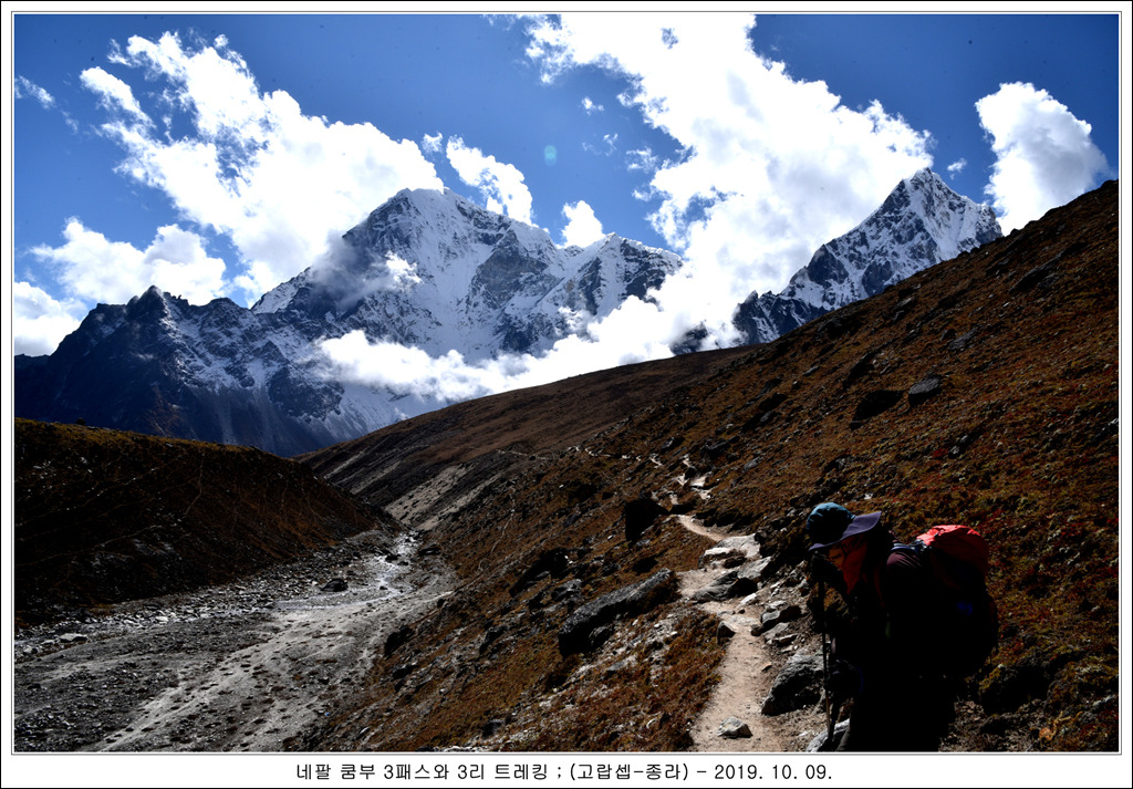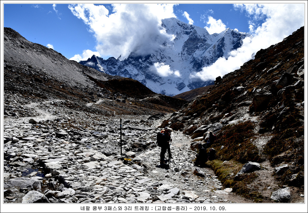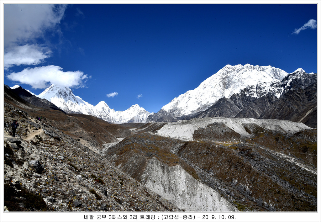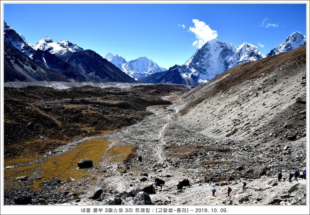 칼라파타르를 다녀와서 늦은 아침을 먹고 고락셉(GORAKSHEP)을 출발 로부체(ROBUCHE) 를 거쳐 종라(DZONGLHA) 까지 갑니다