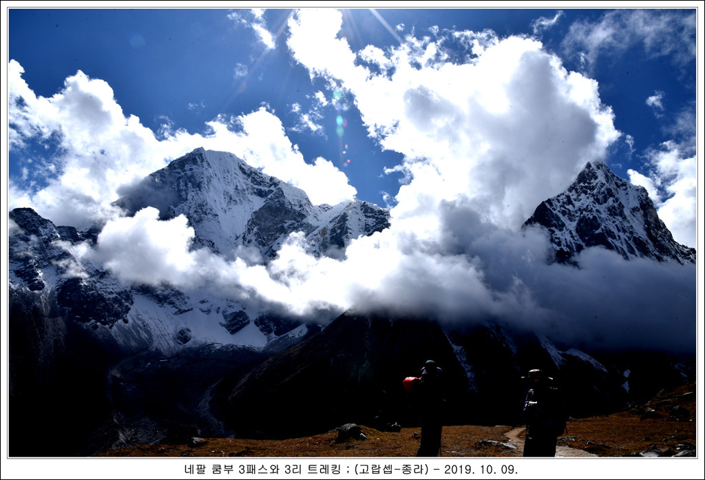 건너편 딩보체로 내려가는 길과 뒤에 눕체