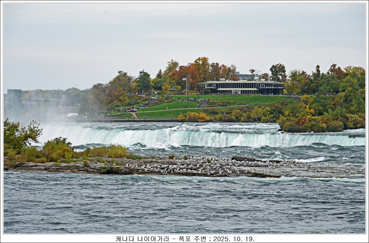 다시 내려가면서 보는 폭포 상류인데 건너편 미국입니다
