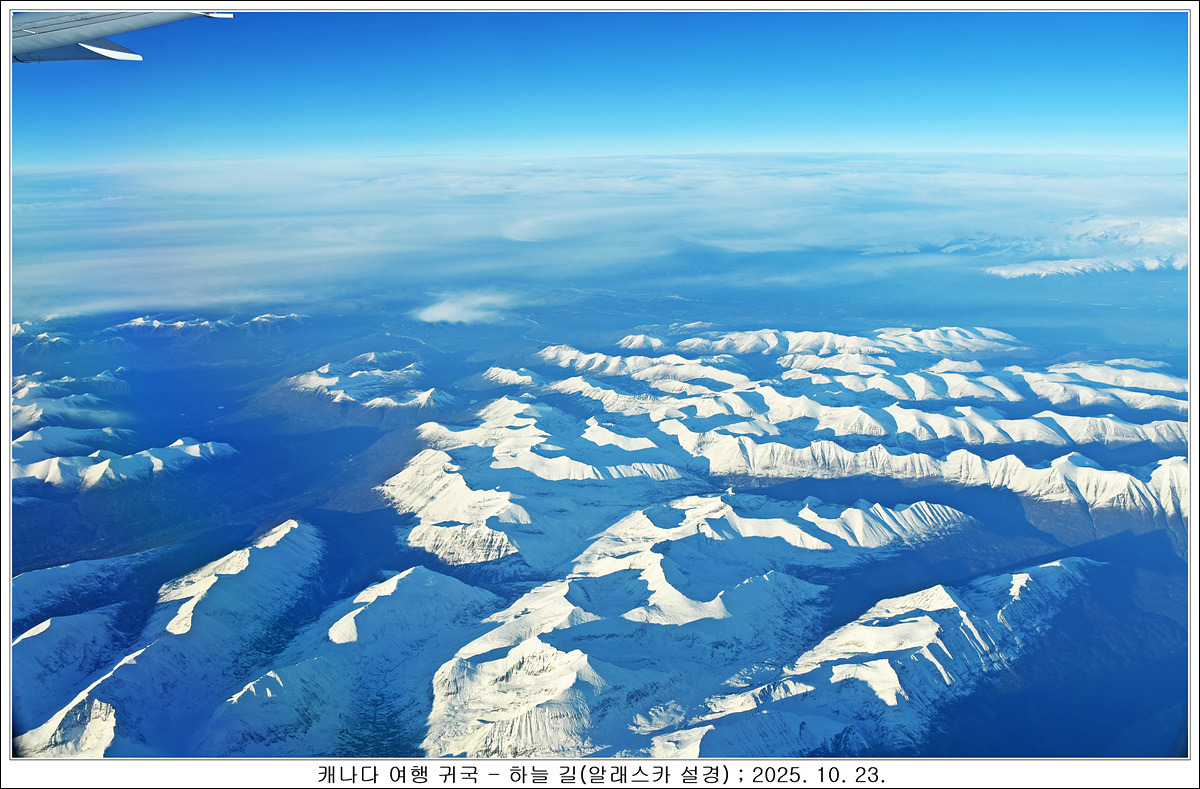 동생 집에 갔다가 몇 일 후 귀국길인데 밖을 보니까 온통 설산이네요