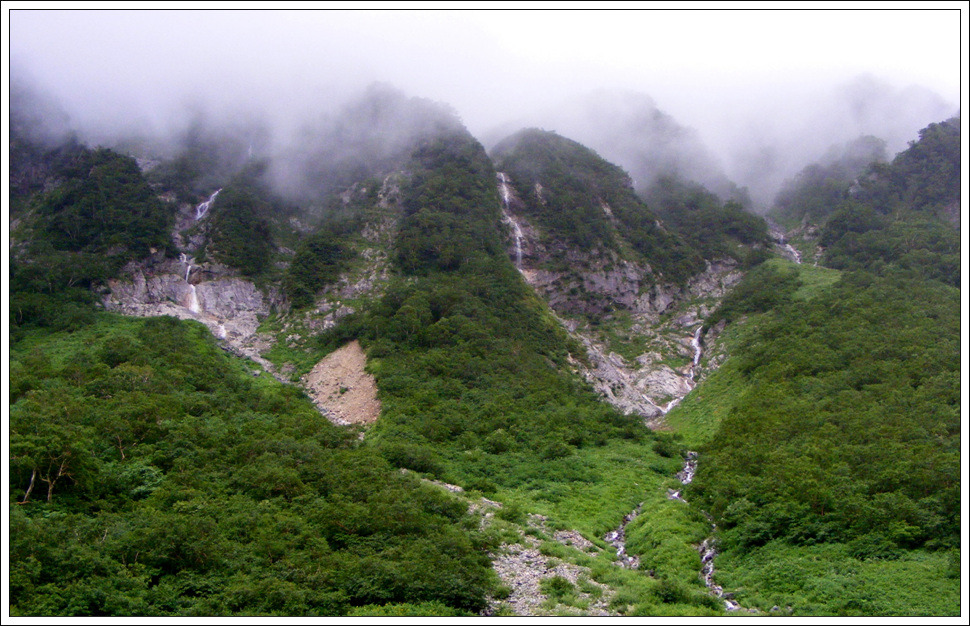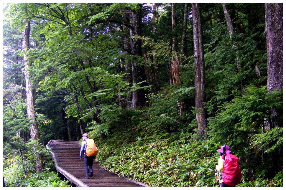 텐구바라 분기점에서 부터는 올라왔던 길을 되돌아 갑니다, 올라올 때는 그 전날 비가와서 계곡에도 물이 많고 곳곳에 폭포가 만들어졌는데 오늘은 비가 꽤 많이 내려서 물이 더 많습니다,