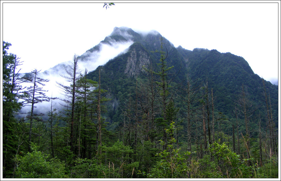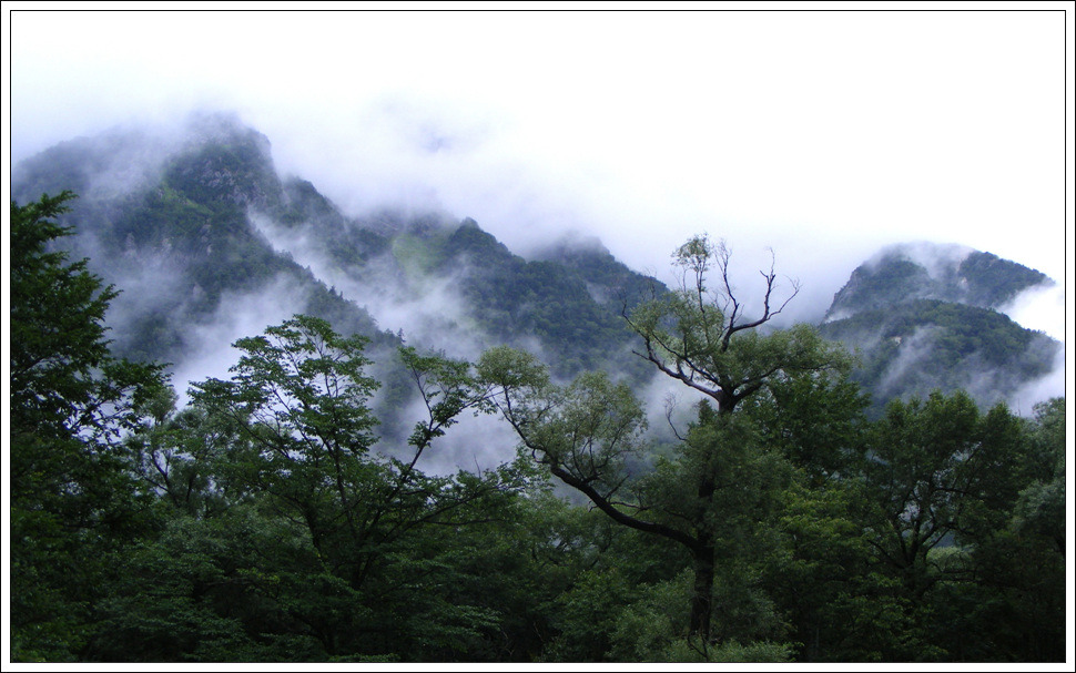 자고 일어나서 26일 아침 묘진 산장 2층에서 보는 북알프스 언저리 ...