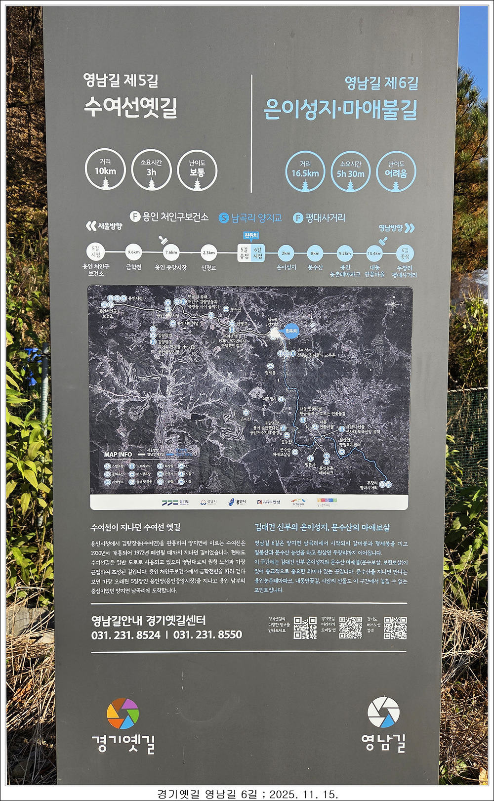 경기 옛길 영남길 6길, 용인 남곡리에서 평대사거리 까지 16.5키로 입니다