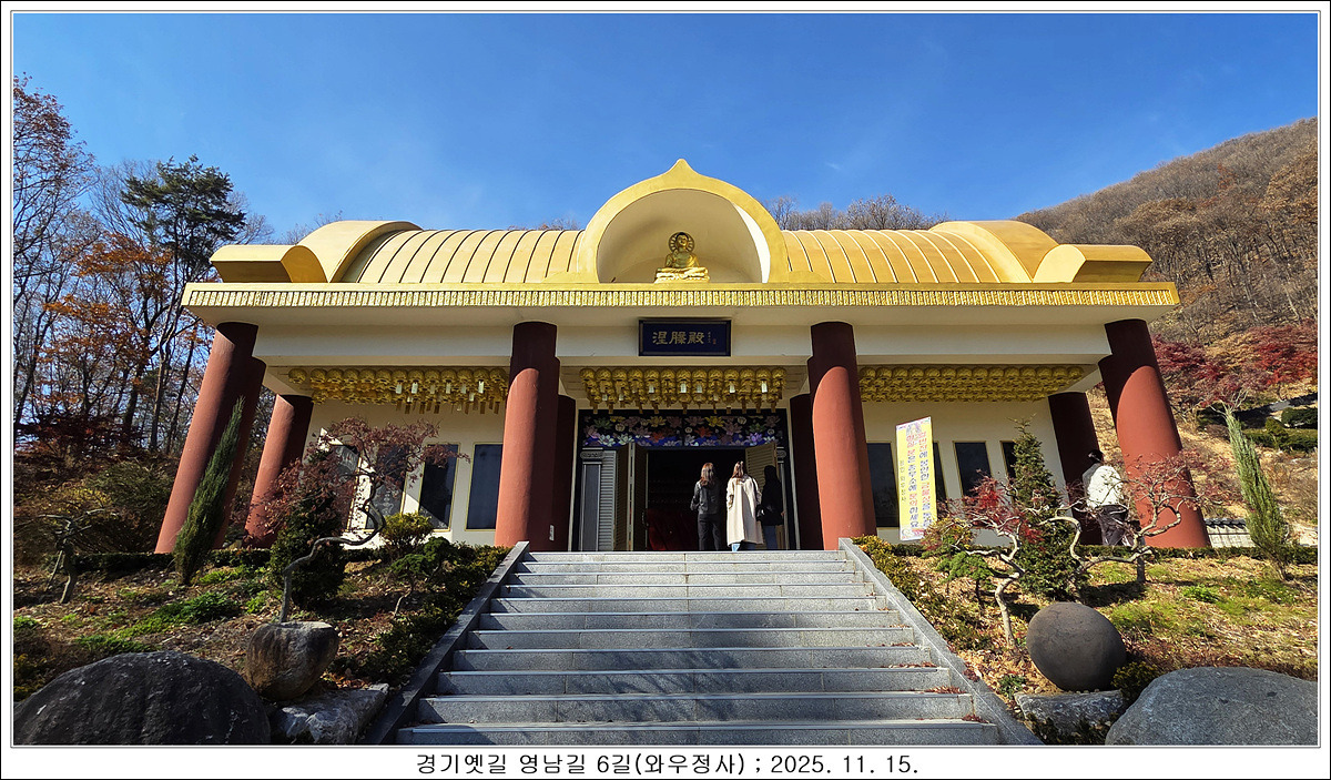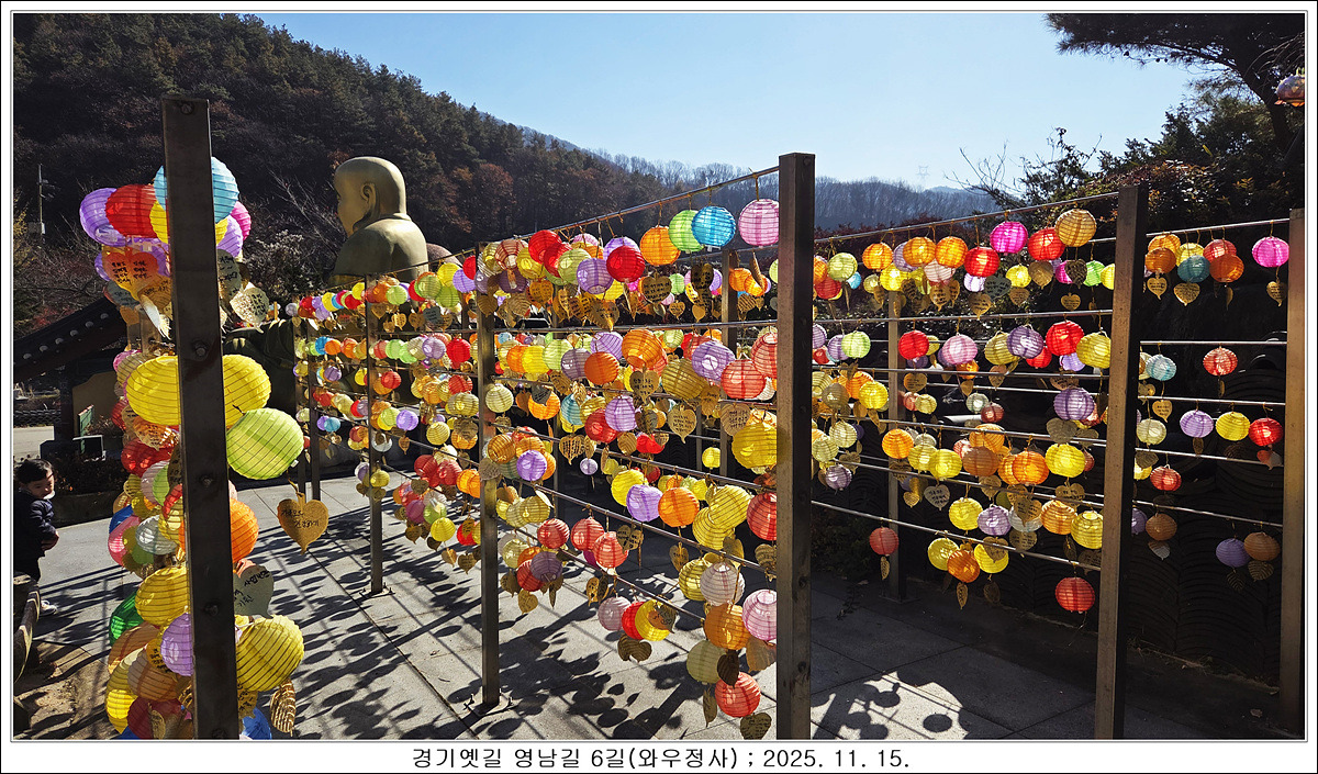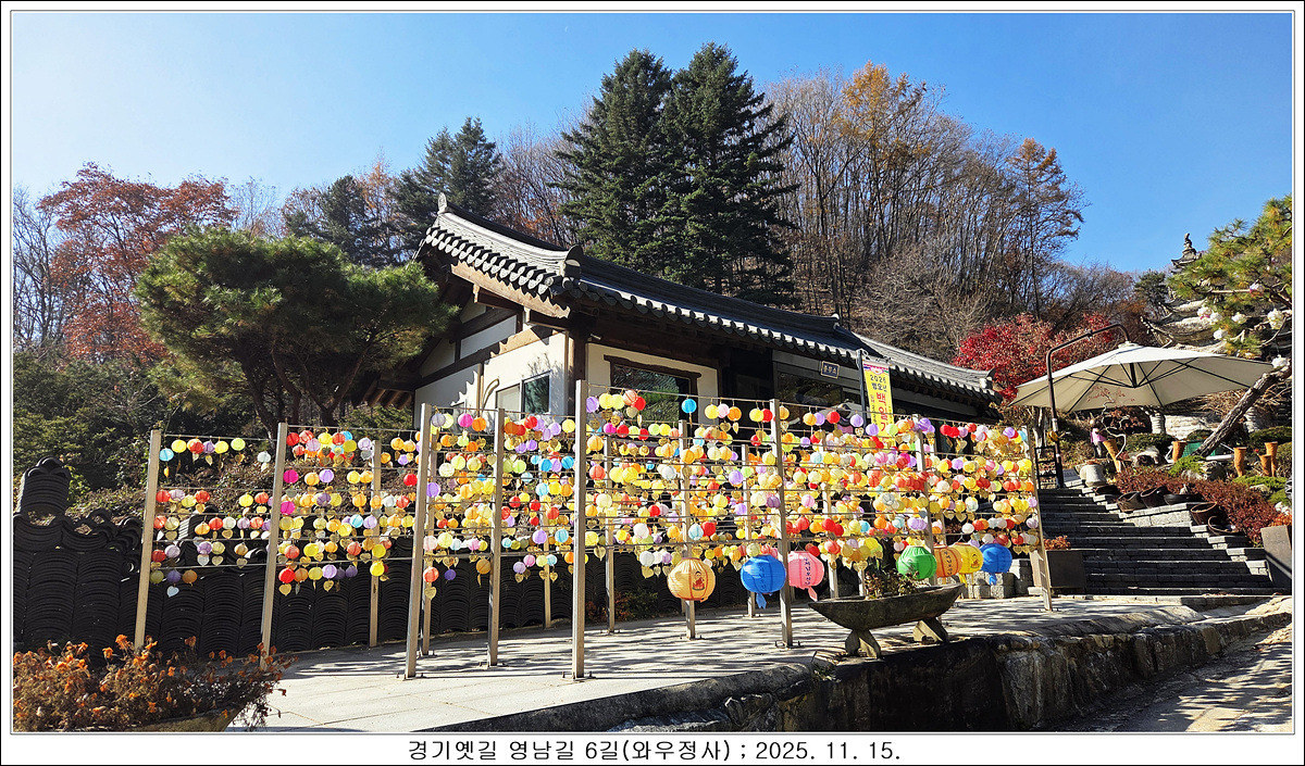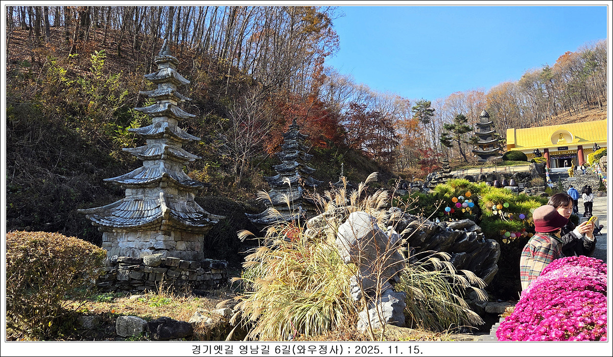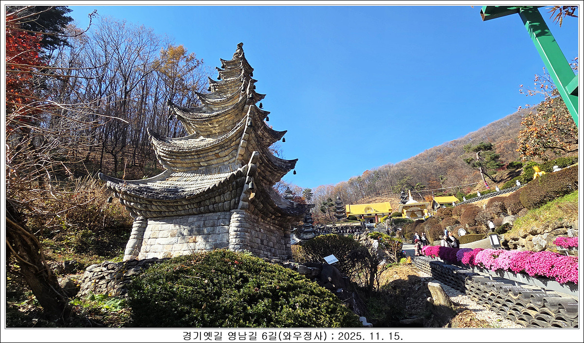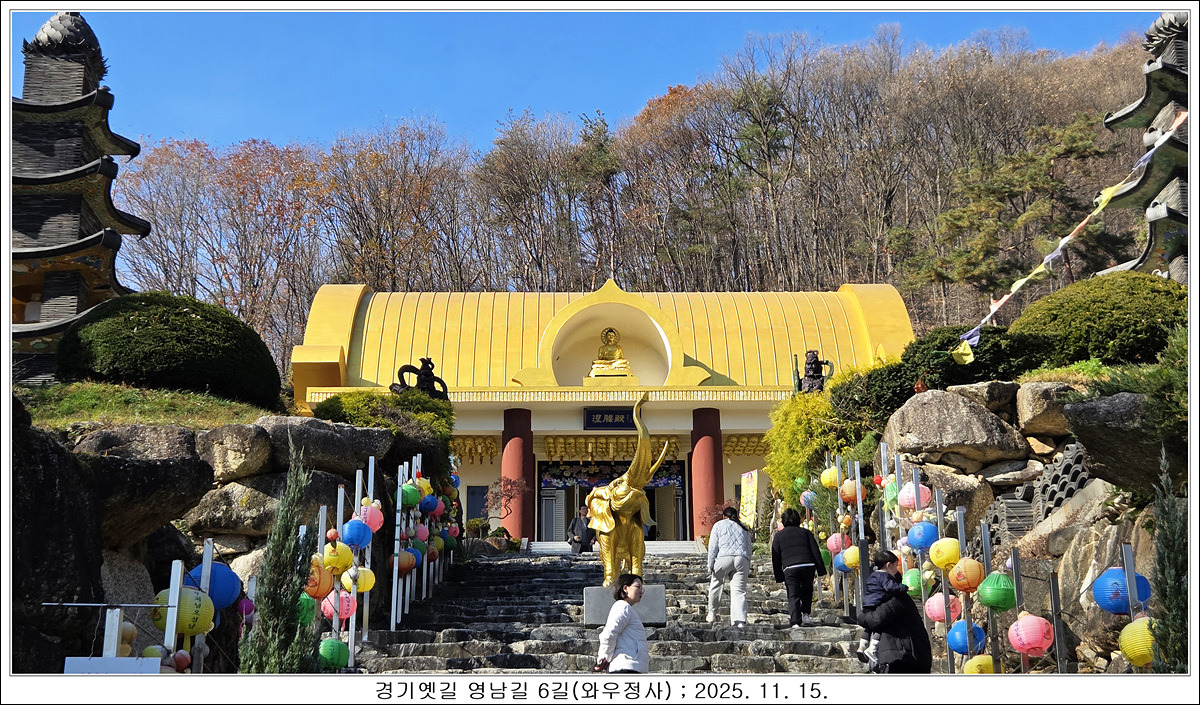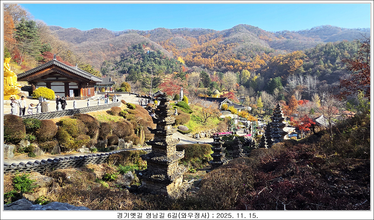 용인 와우정사와 농촌테마파크 ; 25. 11. 15. 작성자배낭여행|작성시간25.11.16|조회수24 목록 댓글 0 글자크기 작게가 글자크기 크게가 영남길 6코스를 걸으면서 와우정사와 농촌테마파크를 둘러보았습니다 와우정사 입구 근처에 아직도 단풍이 남아있군요 용인 농촌테마파크.. 다음검색 현재 게시글 추가 기능 열기 북마크 공유하기 신고 센터로 신고 댓글 댓글 0 댓글쓰기 답글쓰기 댓글 리스트